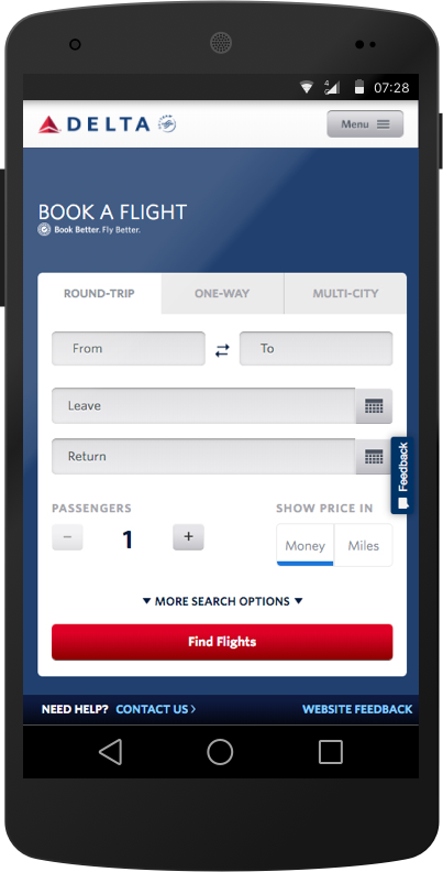 Here are some mobile web screenshots of the Fly Delta Airlines and the newly acquired Virgin Atlantic Airlines: