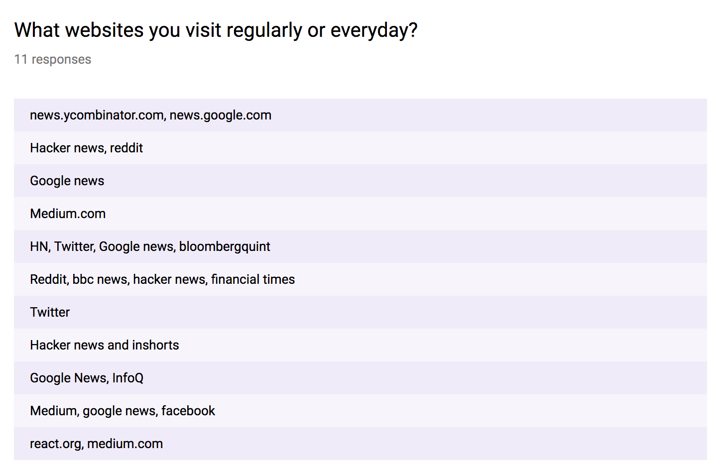 Based on the users’ votes, Google News, HackerNews, Twitter, Medium were the most popular to find content.