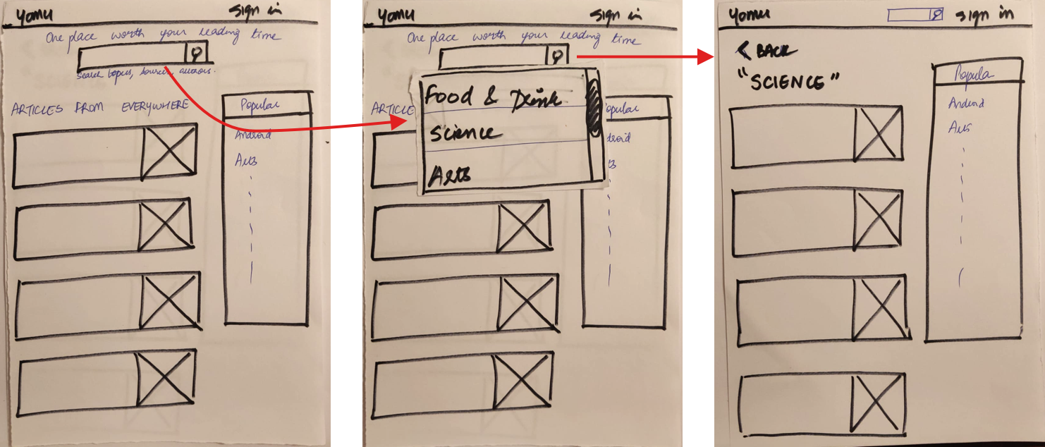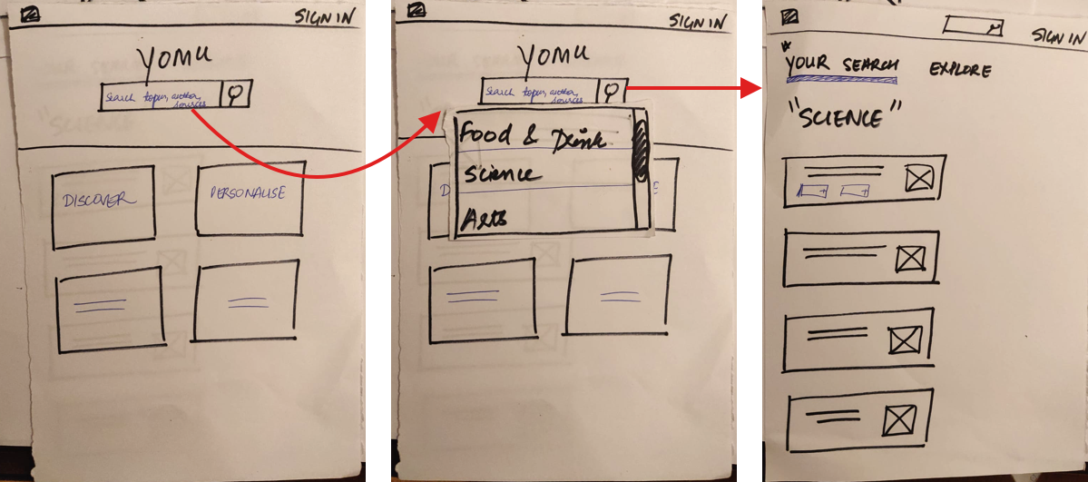 After our initial meetings, I sketched a few paper mockups to understand which concepts better define our product according to the business, which eventually helped me to move in a particular direction.