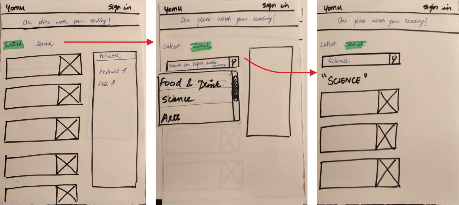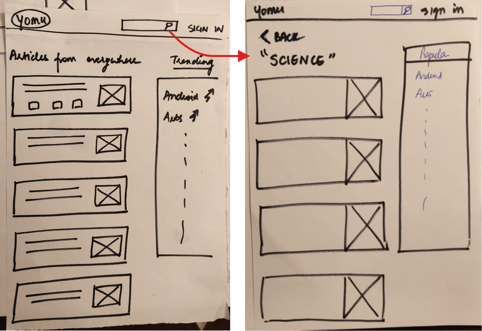 After analysing the feedback on the paper prototypes, I decided to build a solution that would allow both registered and guest user to land on feeds page.