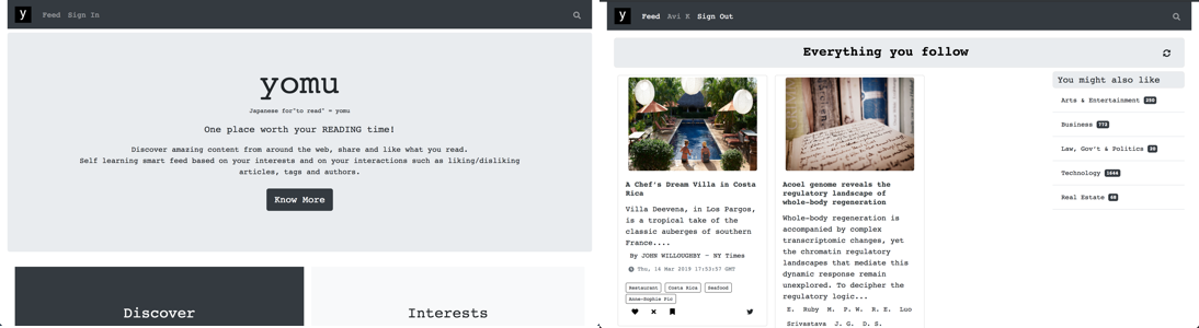 My role in the project is defining user experience of the product and designing its interface. I'm going to share the process that lead us to build the feeds page for yomu.
